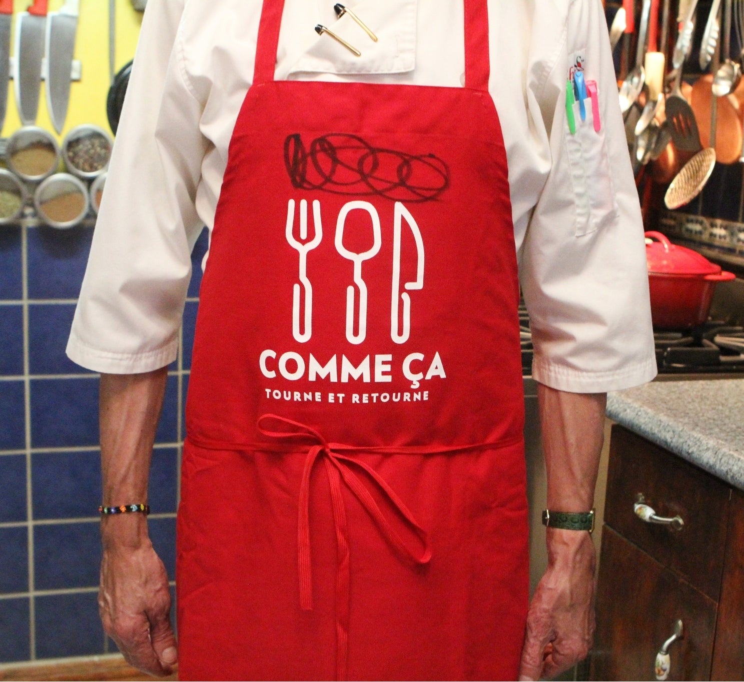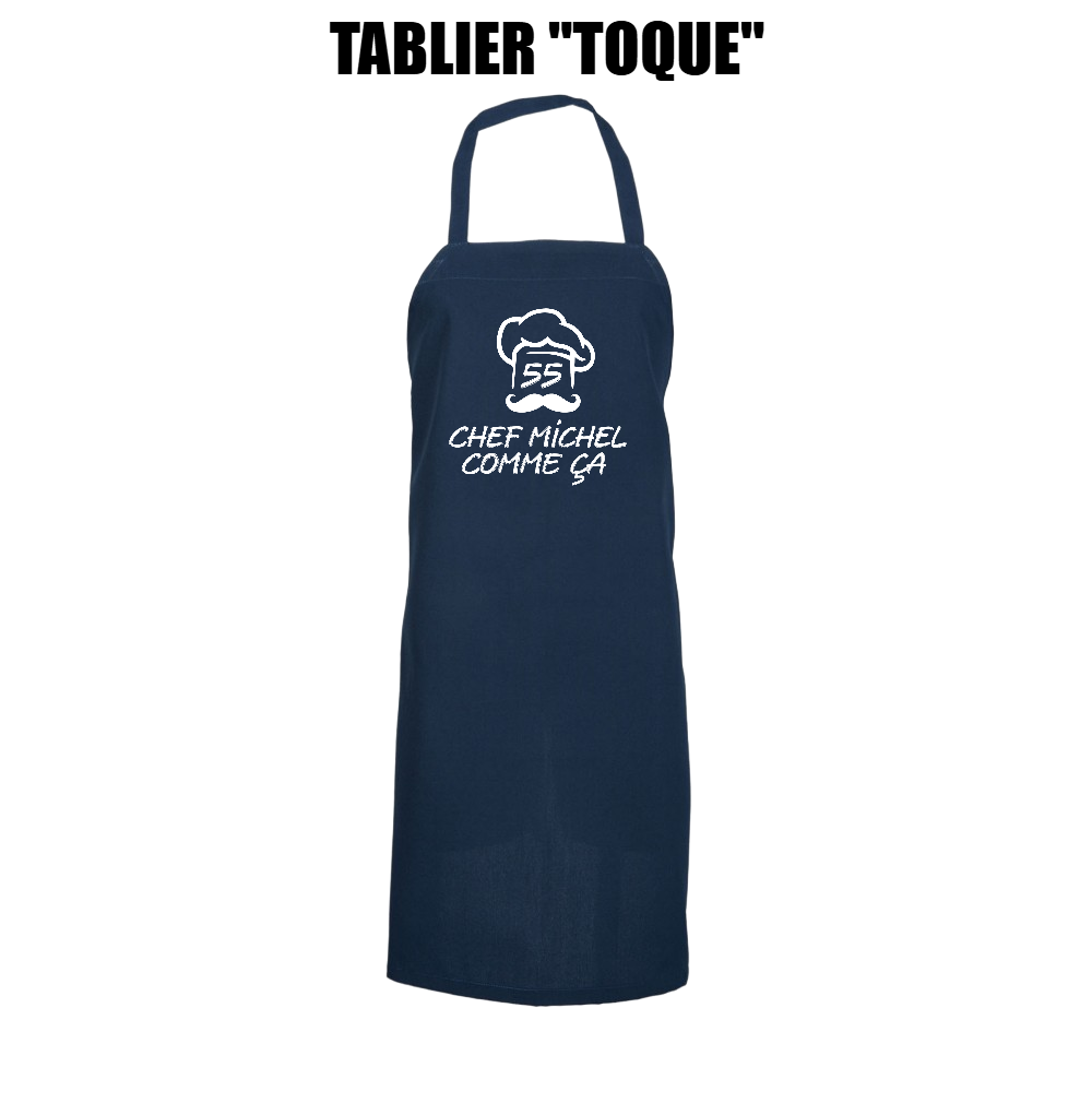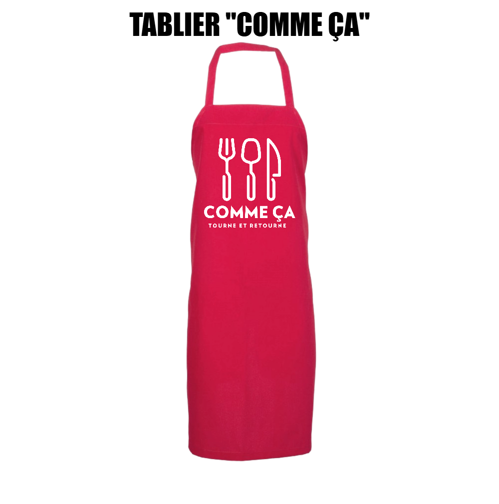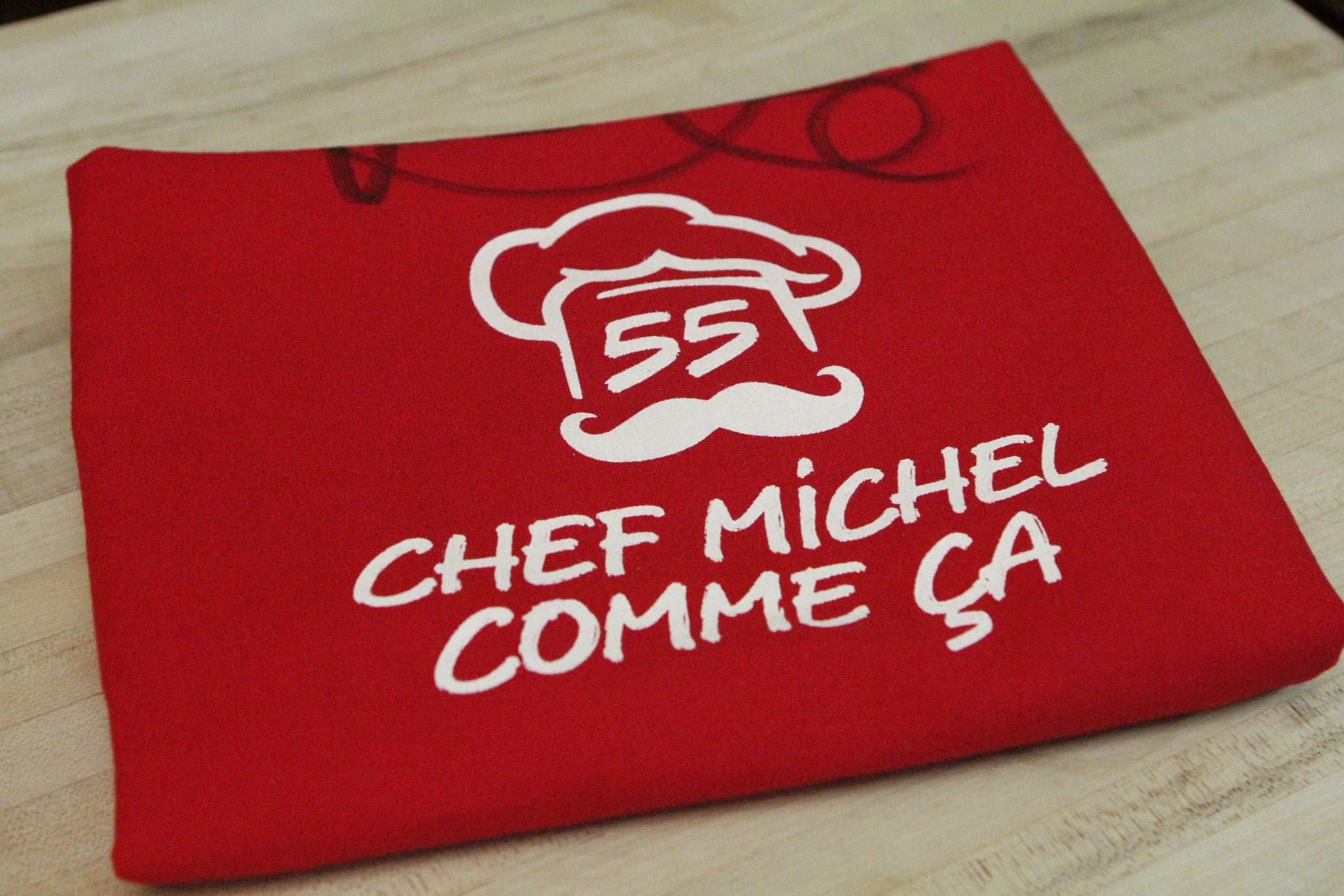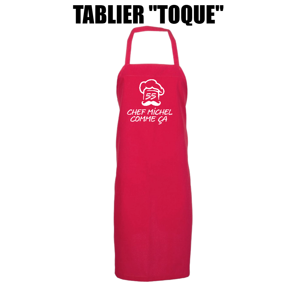 Chaque tablier rouge est signé personnellement par le Chef Michel Dumas directement à la fameuse Table 55.